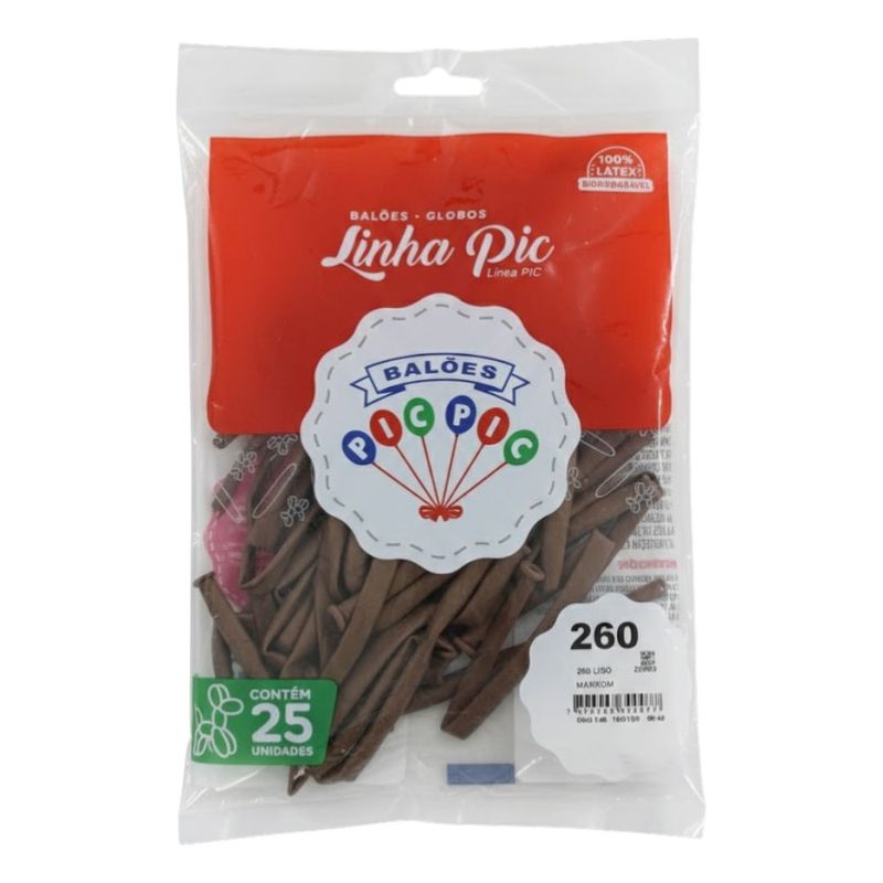 O Balão Linha Pic N260 Marrom 25un Pic Pic traz uma organicidade única para o universo da decoração, oferecendo um tom terroso rico e quente que evoca elementos naturais com extrema fidelidade. Este modelo, amplamente reconhecido pela versatilidade do formato canudo, é a escolha definitiva para artistas que buscam criar esculturas que exijam um toque de realismo ou uma paleta de cores mais rústica e sofisticada. A profundidade da cor é mantida de forma homogênea por toda a extensão do balão, garantindo que, mesmo após a inflagem e as torções mais complexas, o pigmento não sofra variações, preservando uma estética profissional e impecável em cada detalhe da obra.