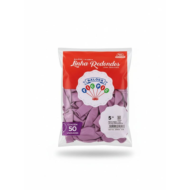 Balão Linha Redondos Liso N05 Lilás Orquídea 50un Pic Pic