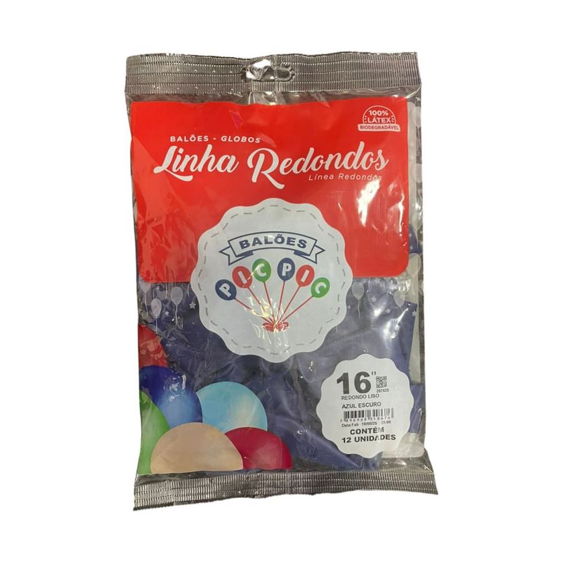 O Balão Linha Redondos Liso N°16 Azul Escuro 12un Pic Pic é ideal para quem deseja uma decoração marcante, elegante e de alta qualidade.