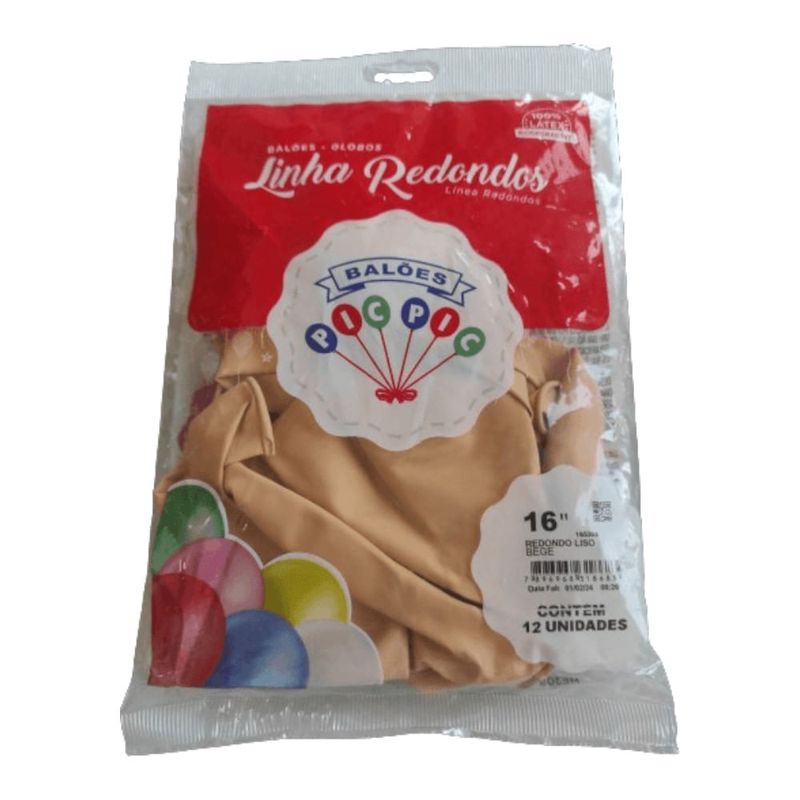 BalõesLatexBalão Linha Redondos Liso N16 Bege 12un Pic Pic