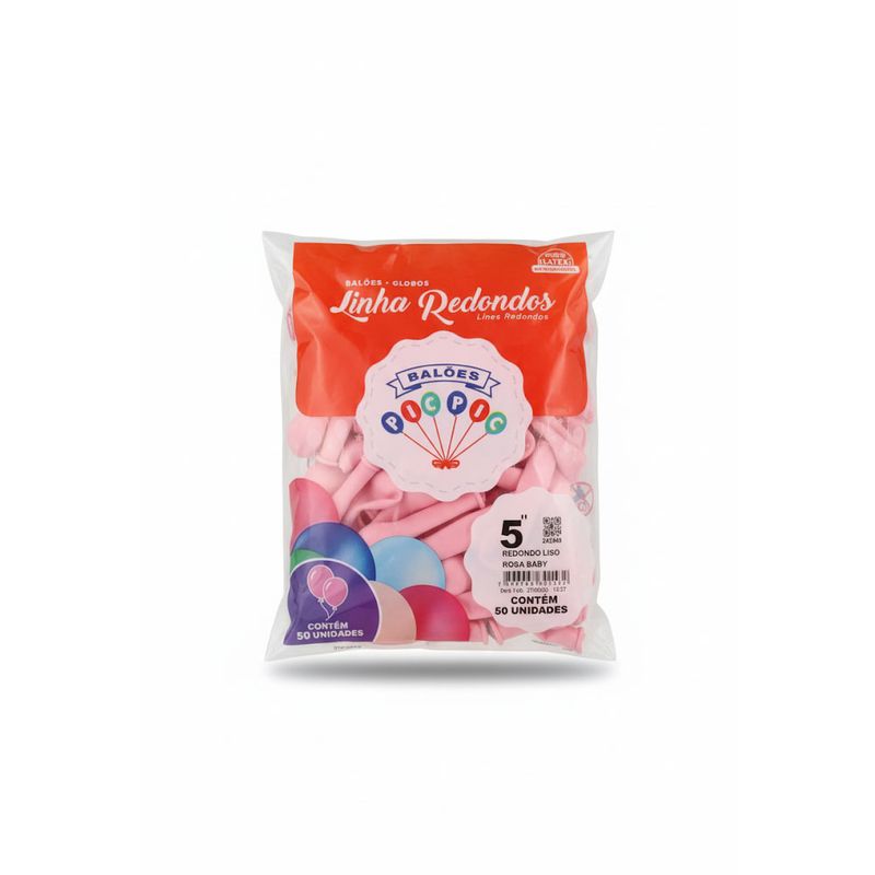 Balão Linha Redondos Liso N05 Rosa Baby 50un Pic Pic