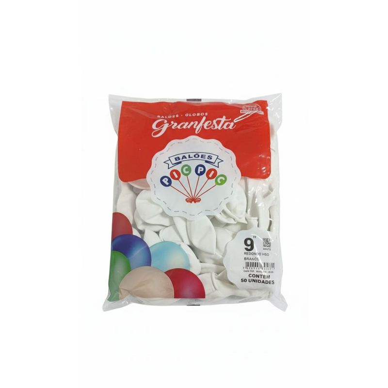 Balão Linha Granfesta Liso N°9 Branco da Pic Pic! Com 50 unidades por pacote, ele é perfeito para criar decorações sofisticadas em casamentos, batizados, aniversários ou eventos corporativos.