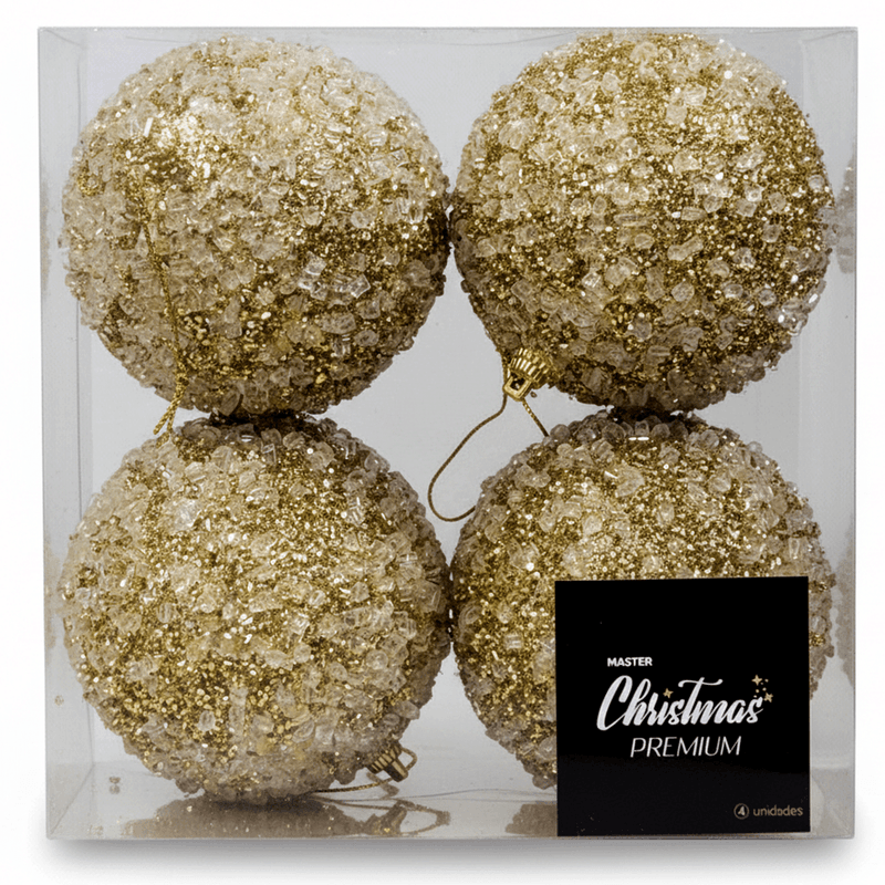 Luxo em cada galho O conjunto com 4 Bolas Douradas com Lantejoulas da Rio Master 8 cm é a definição de brilho festivo. Com acabamento reluzente e lantejoulas que capturam cada raio de luz, essas bolas transformam sua árvore em um verdadeiro espetáculo dourado. São como pequenos sóis natalinos, irradiando elegância, calor e celebração. Perfeitas para quem quer uma decoração que não passa despercebida porque o Natal merece brilhar em grande estilo.