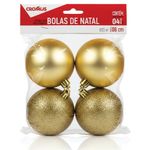 TemáticosNatalBolas Para Árvore De Natal Decorada Sortido Ouro 8cm 4un Cromus