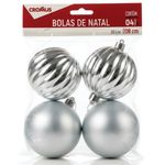 TemáticosNatalBolas Para árvore De Natal Decorada Sortido Prata 8cm 4un Cromus