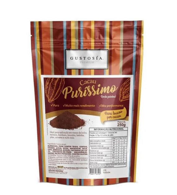 Valor energético - 314kcal Carboidratos - 38g Açúcares totais - 37 Açúcares adicionados - 29 Proteínas - 5,9g Gorduras totais - 16g Gorduras saturadas - 9,7g Gorduras trans - 0,6g Fibra alimentar - 1g Sódio - 203mg.