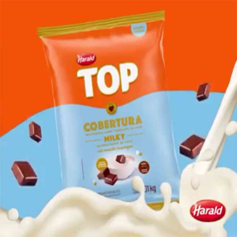 Cobertura Chocolate Fracionada Top Milky ao Leite 1,01kg Harald Top Milky é uma cobertura feita com tecnologia inovadora que traz um surpreendente sabor intenso de leite e notas caramelizadas. Em sua nova fórmula, o Chocolate Ao leite é mais macio e saboroso, preferência testada com consumidores. Ideal para a confecção de bombons, ovos de páscoa, cobertura de pães de mel, trufas, ganaches, etc. A nova formulação do produto facilita o manuseio, oferecendo mais fluidez perfeita para garantir um ótimo rendimento.
