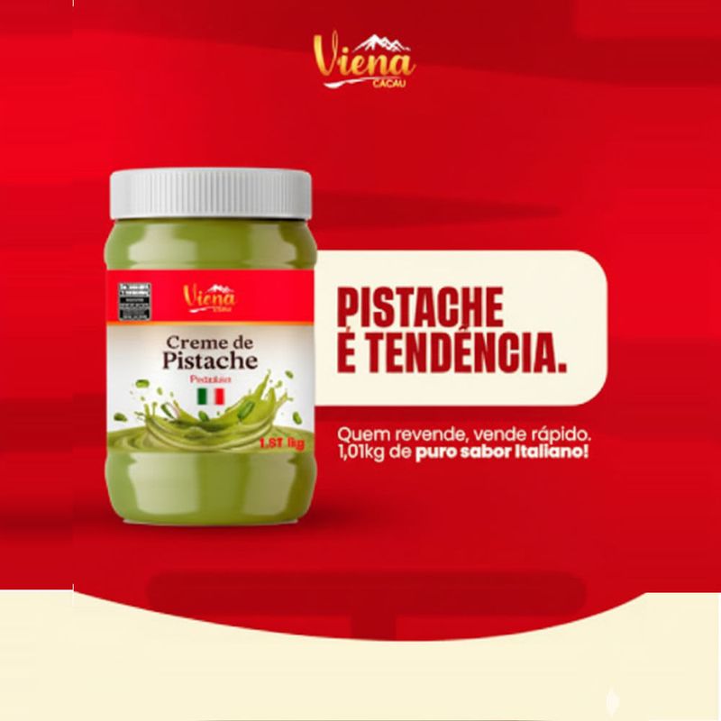CREME DE PISTACHE PREMIUM 1,01KG VIENA CACAU é uma pasta doce de alta qualidade, desenvolvida especialmente para quem busca sabor refinado e versatilidade na confeitaria. Com textura cremosa e cor característica do pistache, esse creme é ideal para recheios de bolos, tortas, trufas, bombons, sobremesas geladas e até mesmo para uso direto em pães, panquecas ou tapiocas.