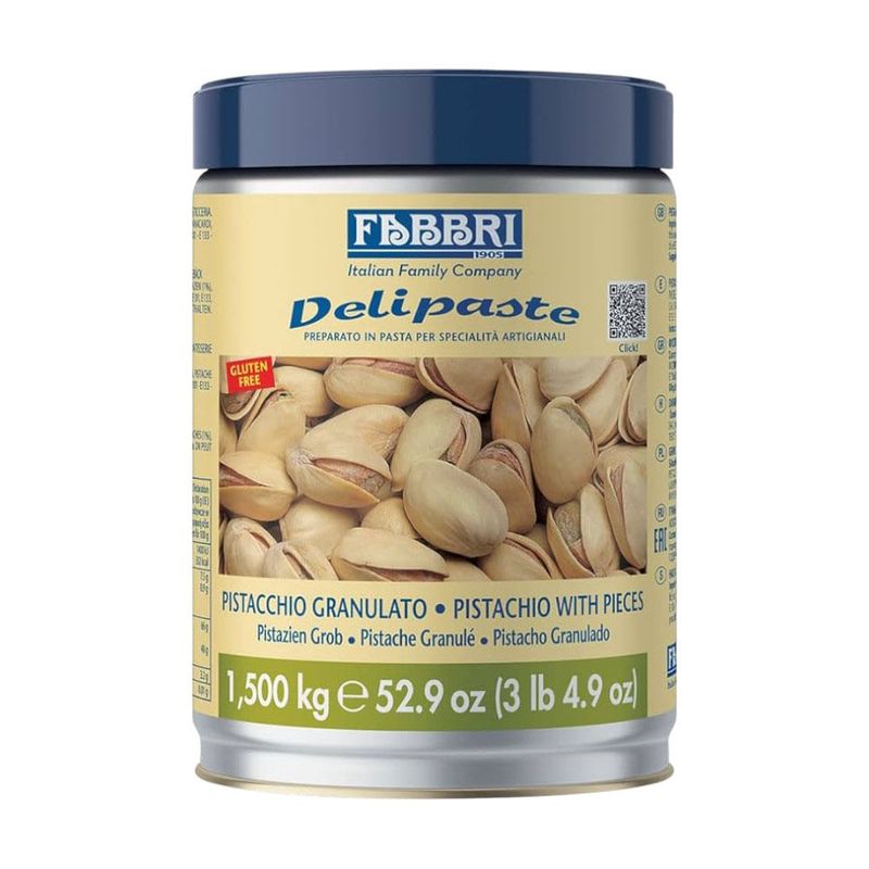 Delipaste Pistache Granulado Com Pedaços 1,5kg Fabbri é uma pasta concentrada premium feita com pistaches selecionados, que se destaca pela presença de pedaços visíveis e textura granulada, oferecendo sabor intenso e natural. Ideal para uso profissional ou artesanal, ela é perfeita para receitas como sorvetes, cremes, recheios, bolos, semifreddos e até pratos salgados sofisticados.