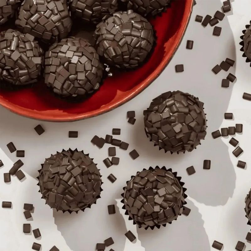 Ingredientes: Açúcar, massa de cacau, gordura vegetal, emulsificantes: lecitina de soja e ésteres de ácido ricinoléico interesterificado como poliglicerol, glaceante: goma laca e aromatizante.
