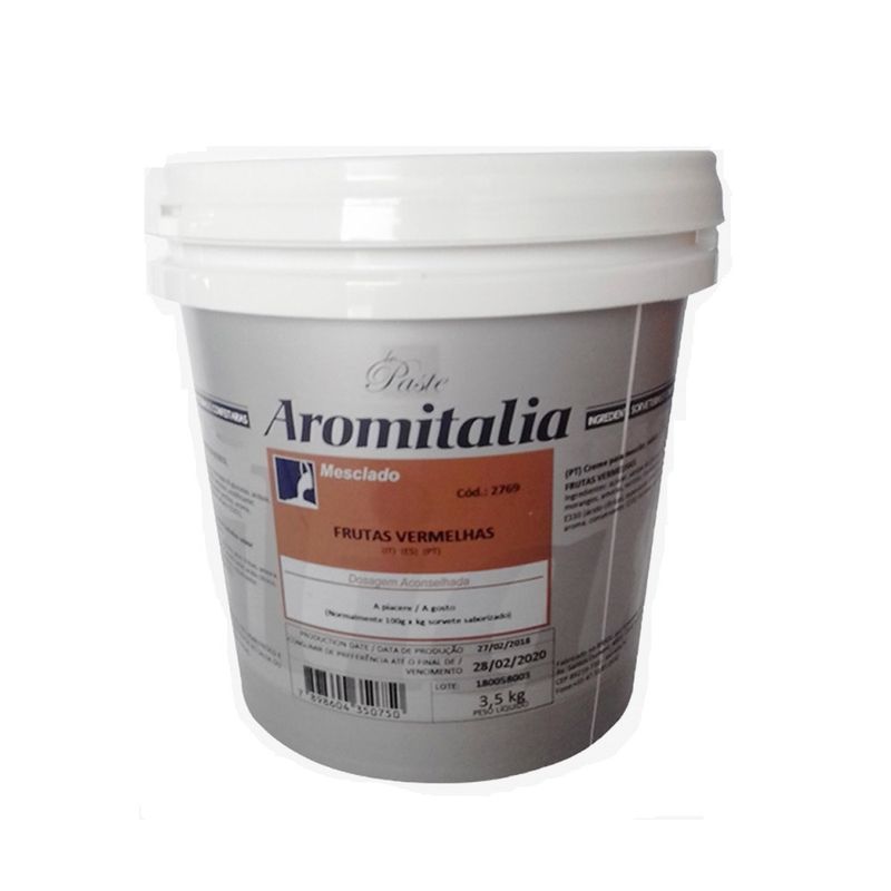 Ingredientes: Açúcar, xarope de glucose, morango, amora, mirtilo, framboesa, E330 (ácido cítrico), E440 (pectina), aroma identico ao natural e E202 (sorbato de potássio).