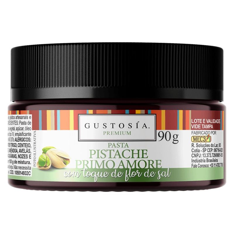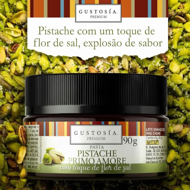 Pasta Gustosía Premium Pistache Primo Amore 90g Mec3 é uma verdadeira celebração do sabor refinado e da excelência italiana em forma de pasta. Elaborada com pistaches selecionados, ela entrega uma textura cremosa e um aroma envolvente que transforma qualquer preparação em uma experiência gourmet.