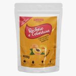 Ingredientes: Damasco, açúcar, amido, espessante alginato de sódio, acidulante ácido cítrico, conservador sorbato de potássio e corante artificial amarelo sunset.